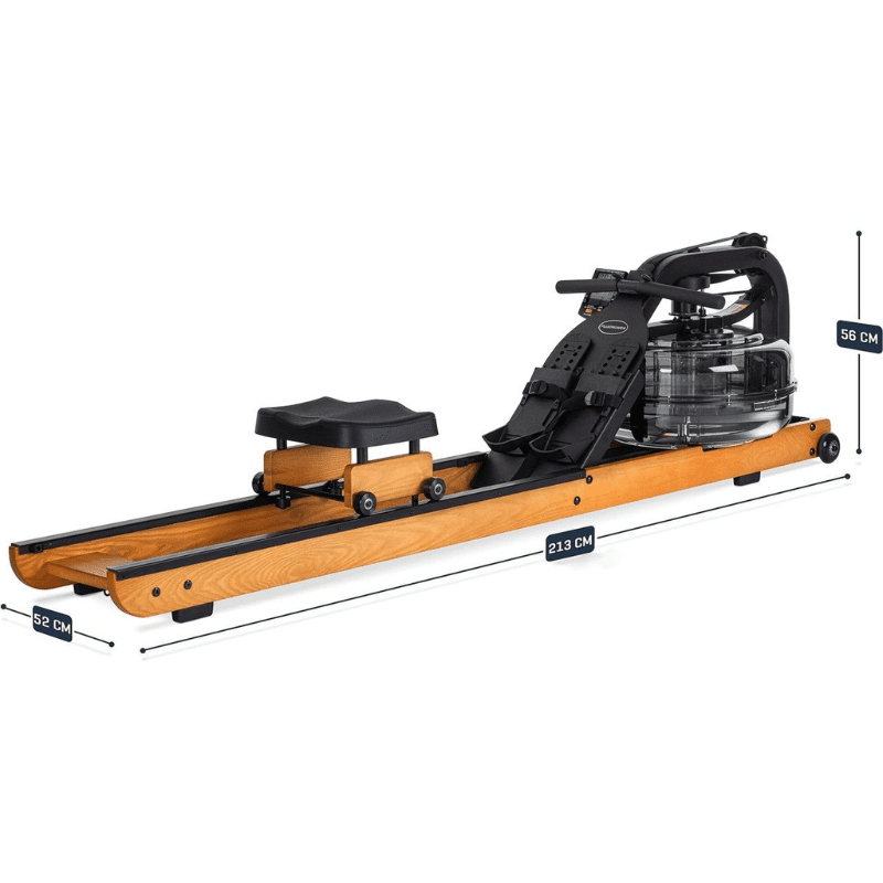 Die Schienen bestehen aus hochwertigem, lackiertem Holz, während der stabile Stahlrahmen den patentierten Doppelkammer-Wassertank und das innovative Zugseilsystem unterstützt. Mit dem benutzerfreundlichen Bluetooth-LCD-Monitor haben Sie Ihre Trainingsdaten stets im Blick.