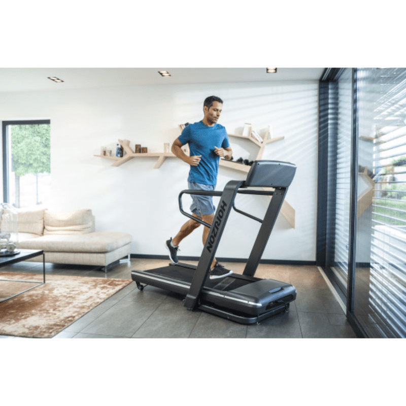 - Hochwertiges Horizon Laufband in der Dark Edition – im eleganten Anthrazit-Look