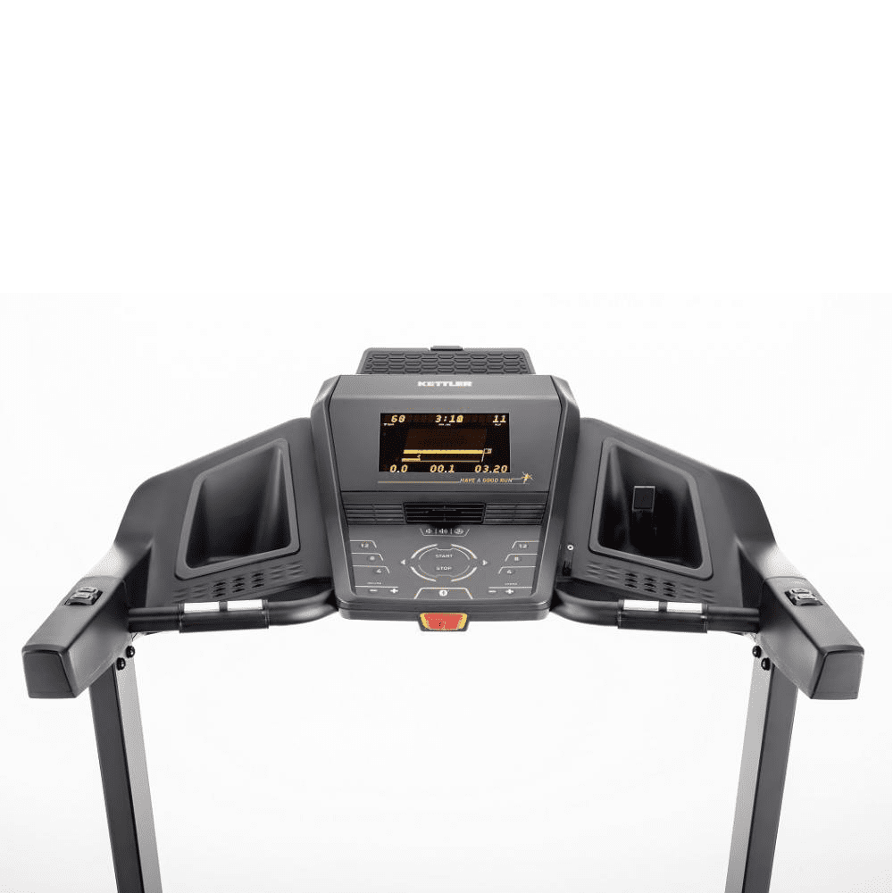 Auch hier hast du allen Komfort in gewohnter Kettler-Qualität: Bluetooth-Anbindung für Kinomap und Brustgurt zur Pulsmessung, Notstopp-System, Transportrollen, ein Soft-Drop-Mechanismus zum Platzsparen und Pulssensoren an den Griffen.