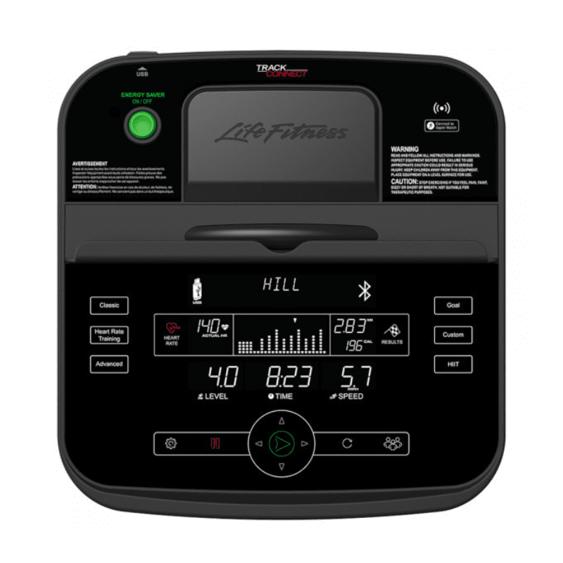 Die neue Track Connect 2.0 Konsole ist für alle Geräte der 1er, 3er und 5er Serie verfügbar. Sie besitzt die neusten Bluetooth-Standards, wie das FTMS-Protokoll zur Steuerung von Ihrem Fitnessgerät. Darüber hinaus können Sie die Konsole mit zahlreichen Fitness-Apps verbinden. Dazu zählen unter anderem Kinomap, Zwift und LFconnect. Während Sie eine Fitnessapp benutzen können Sie Ihr Tablet oder Smartphone einfach in die dafür vorgesehene Halterung stellen. In der Konsole ist außerdem