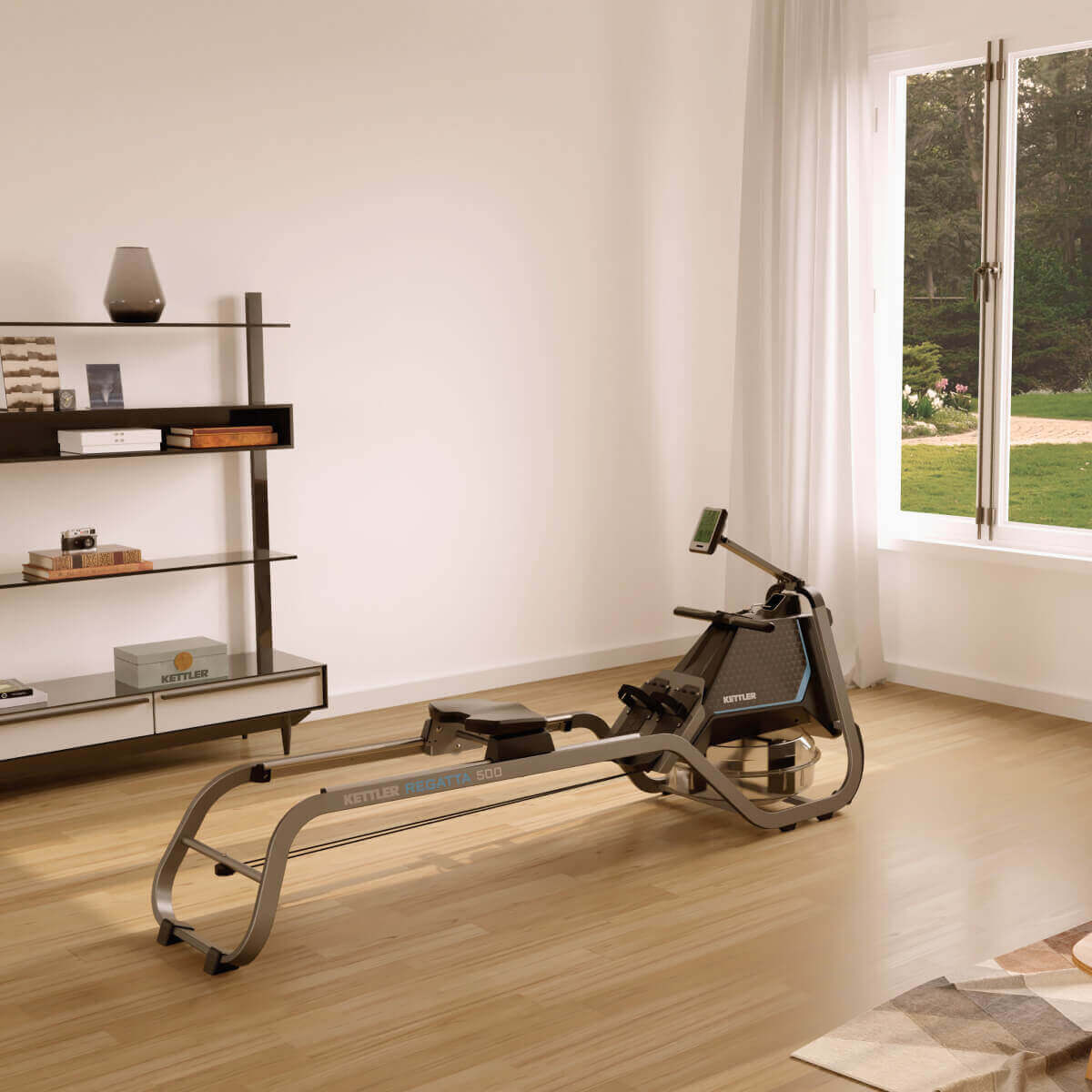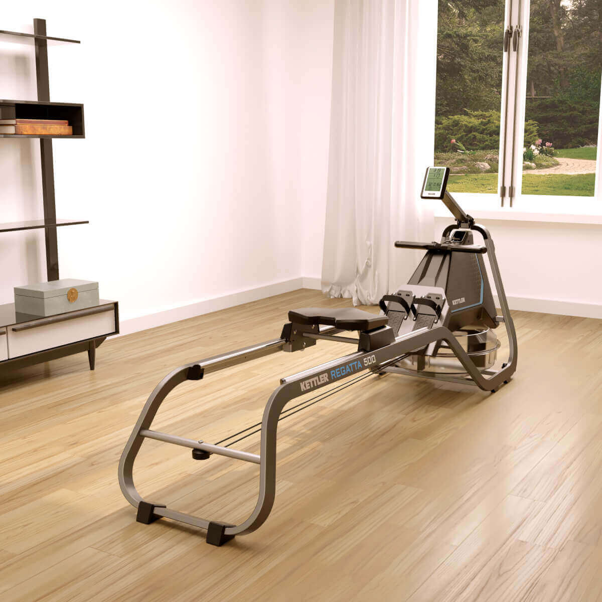 Beim Training mit dem REGATTA 500 hast du alles mit an Bord! Ein realistischeres Rudergefühl geht nicht! Das Rudergerät mit dem Wasserwiderstand-Bremssystem bietet einzigartige Ruderbewegungen mit der Faszination Hydropower – die Bewegungen entsprechen somit dem echten Rudern auf dem Wasser. Je höher die Intensität des Zuges ist, desto höher ist auch der Widerstand. Das Wasserwiderstand-Bremssystem passt sich dir ganz persönlich an. Auch der Griff, der bequeme und erhöhte Sitz sowie das verstellbare Display sorgen für Trainingseinheiten, welche mit höchstem Komfort ausgezeichnet sind. Das Training mit dem REGATTA 500 beansprucht die gesamte Muskulatur. Steigere so zielgerichtet Kraft und Ausdauer wie im Fitnessstudio und das ganz einfach bei dir zu Hause. Dafür wird nicht einmal viel Raum benötigt – das Gerät lässt sich ganz einfach hochstellen. Für noch mehr Motivation beim Trainieren sorgt das hochwertige Display. Deine Leistungswerte werden auf dem Display präzise und in Echtzeit abgebildet. Die Bluetooth-Schnittstelle kann verwendet werden, um die Kinomaps App oder Herzfrequenzmessgeräte zu verbinden.