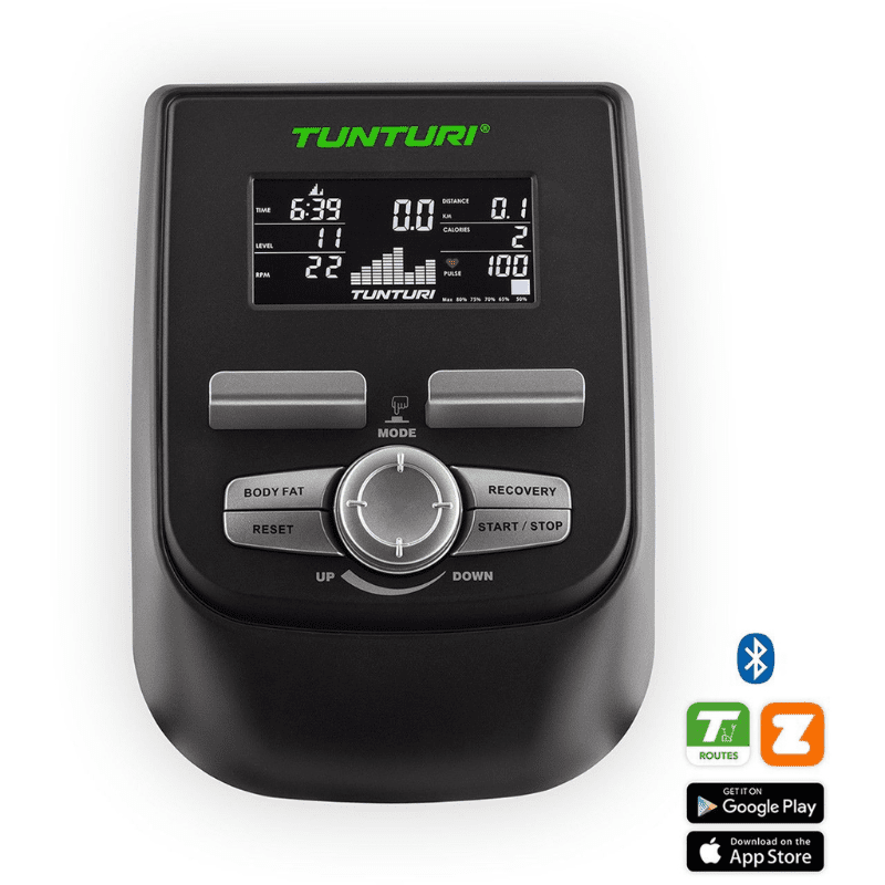 Damit ist das Potential aber noch lange nicht erschöpft! Denn dieser Tunturi Heimtrainer Ergometer hat auch noch die Möglichkeit ein Tablet oder Smartphone via Bluetooth zu verbinden und somit die spannenden Möglichkeiten der Apps Zwift, Tunturi Routes, i-Console+ und Kinomap zu nutzen. Sobald Sie dies tun, entfalten sich ganz andere Möglichkeiten! Erstellen Sie sich einen Account und fahren Sie mithilfe Google-Maps durch die ganze Welt. Durch diverse Messungen können Sie Ihr Training auf dem Laufenden halten und auf Facebook oder Twitter mit Ihren Freunden teilen.