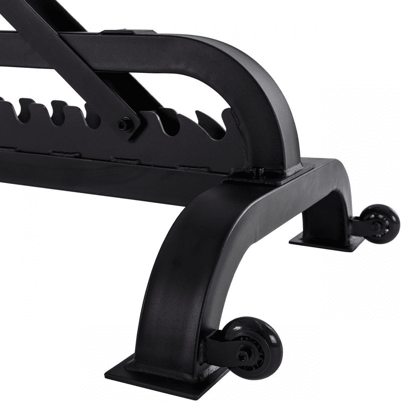 Die Hantelbank ist mit hochwertigen Polstern ausgestattet, die durch eine elegante Ziernaht nicht nur Komfort, sondern auch Langlebigkeit garantieren. Dank der stabilen TPR-Griffe und der breiten Standfüße bleibt die Bank rutschfest und bietet Ihnen stets einen sicheren Stand. Trotz ihrer robusten Konstruktion ist die Bank kompakt und lässt sich leicht transportieren.